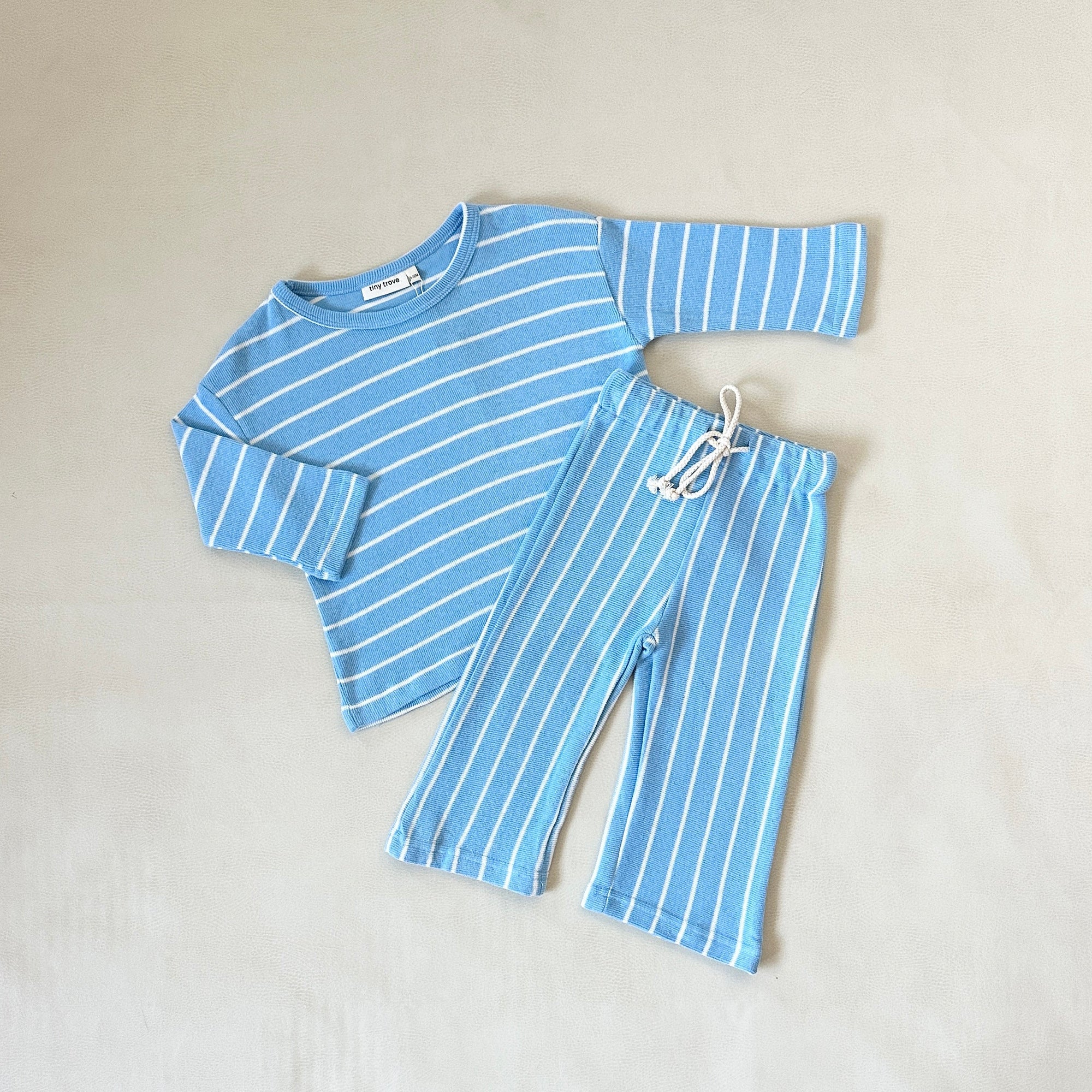 TINY TROVE ALMA COTTON LONG SLEEVE SET: BLUE/WHITE STRIPE