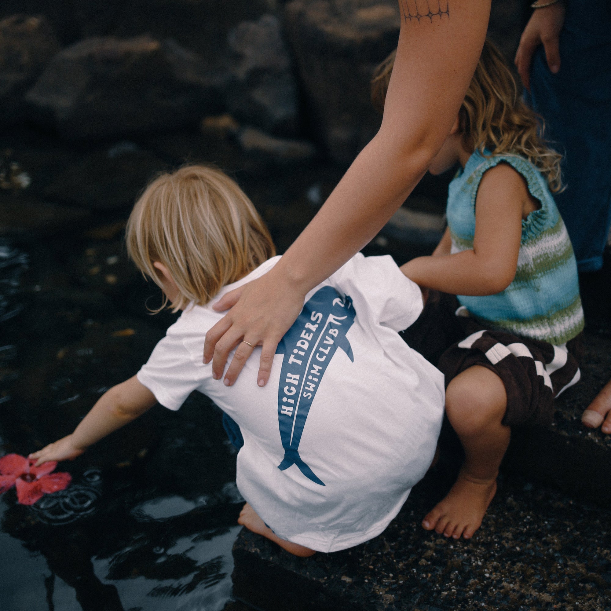 ATMOSEA KIDS HIGH TIDERS TEE: WHITE/TRUE NAVY