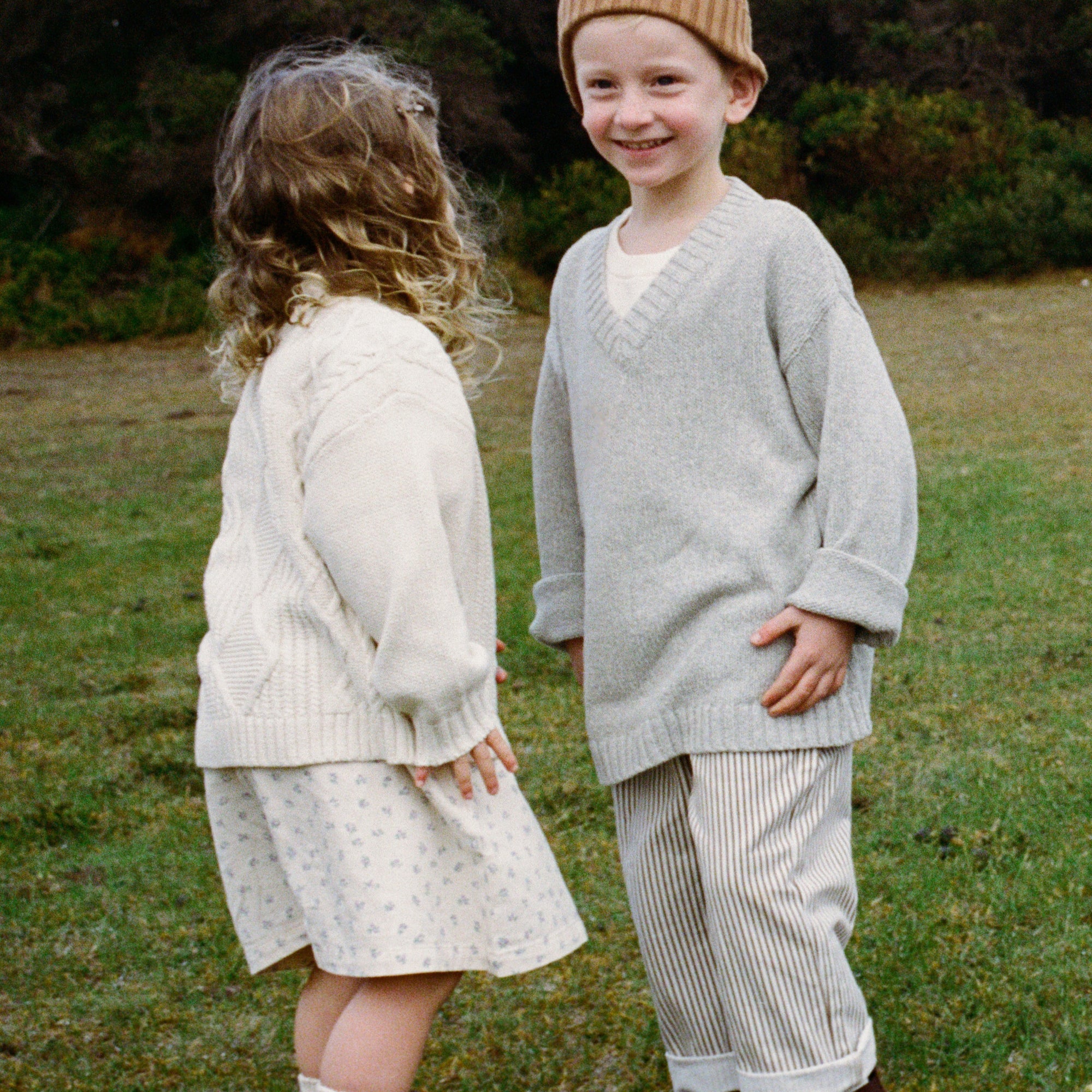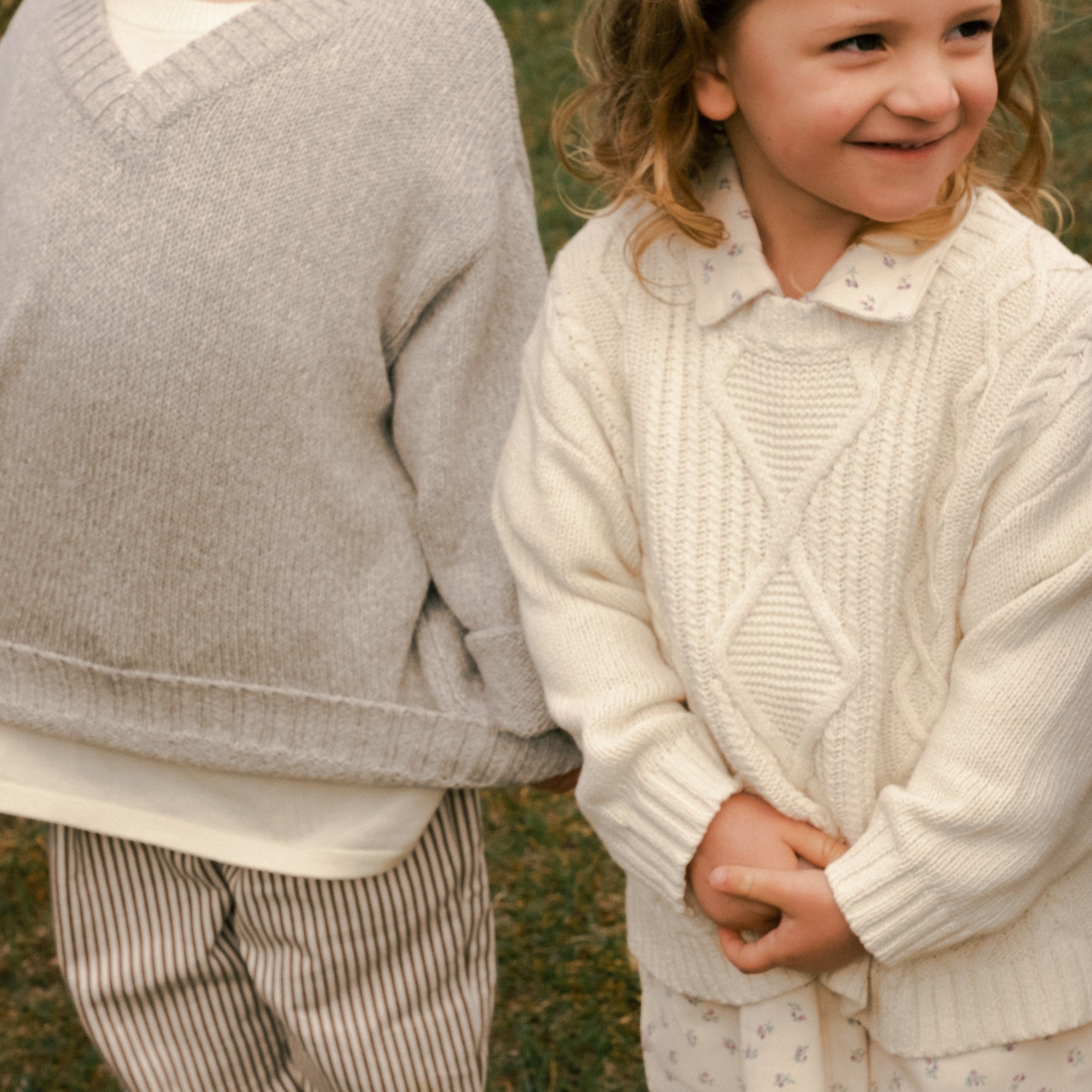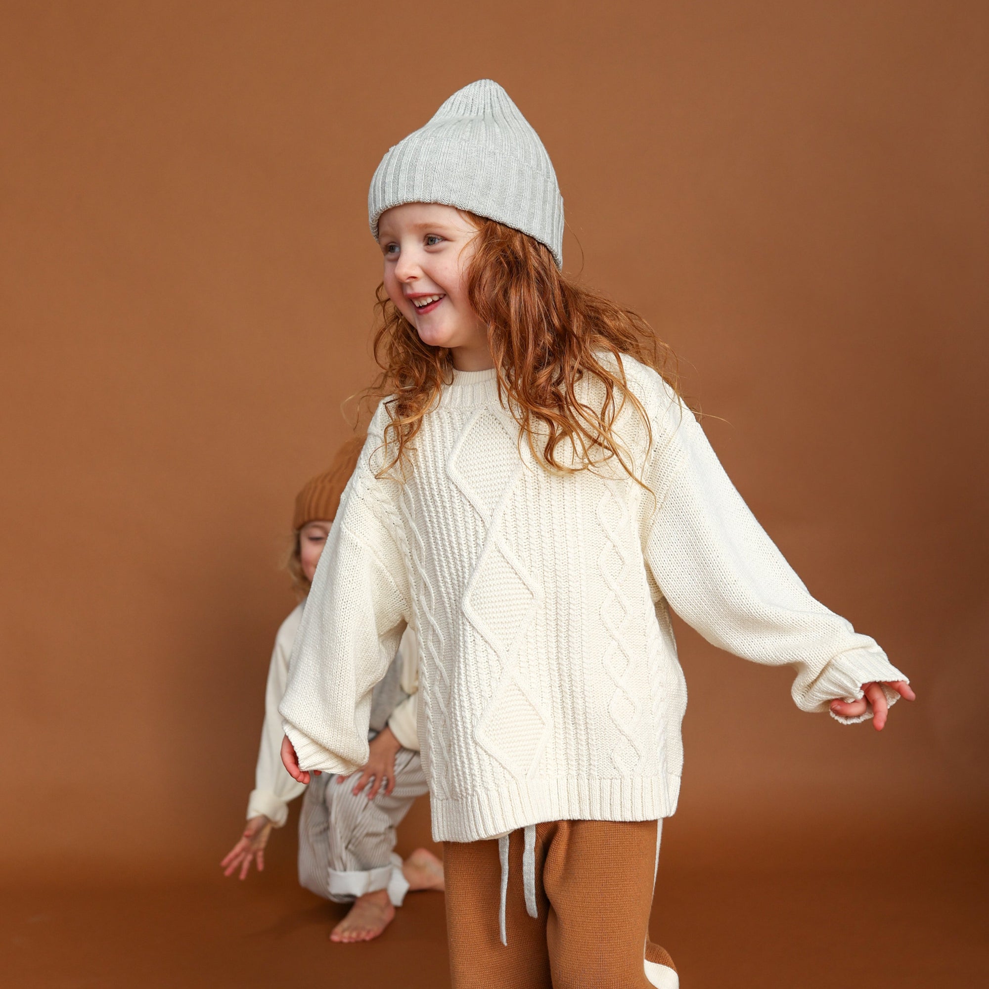 GROWN CHUNKY CABLE KNIT PULLOVER: MILK