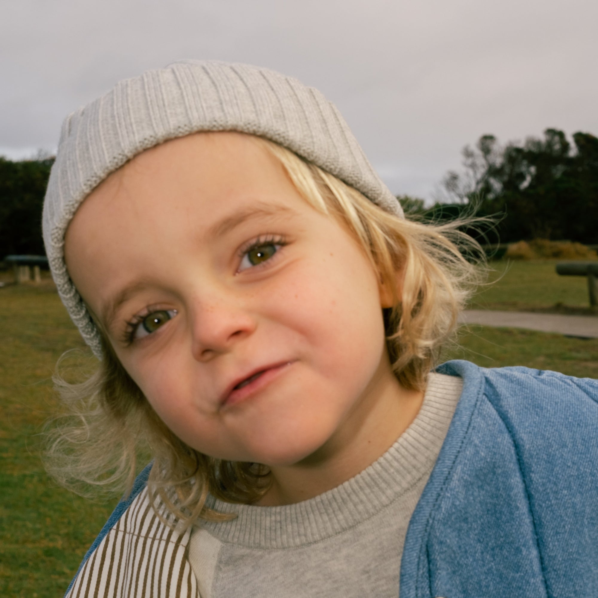 GROWN RIBBED PIXIE BEANIE: GREY MARLE