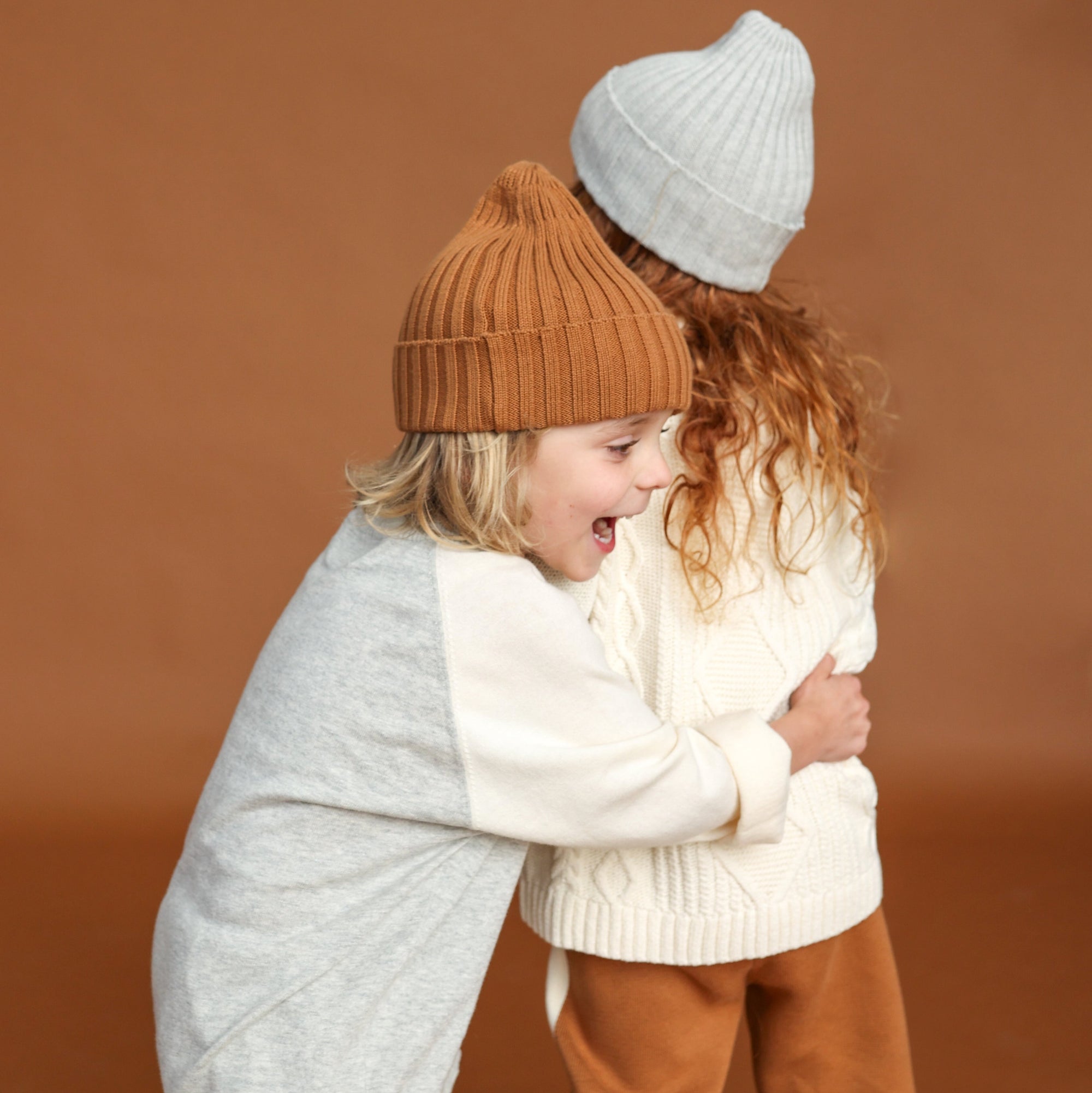 GROWN RIBBED PIXIE BEANIE: TOAST