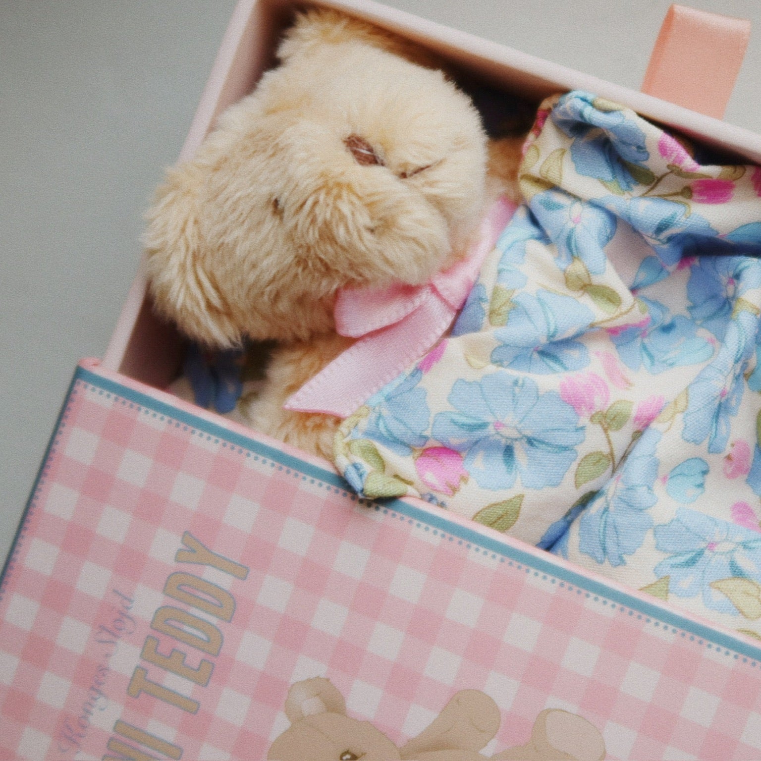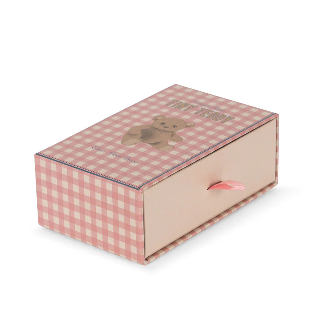 Elise Tiny Teddy comes in a small box that can be transformed into a safe and comforting little bed, all you have to do is pull the tab to open the little drawer.