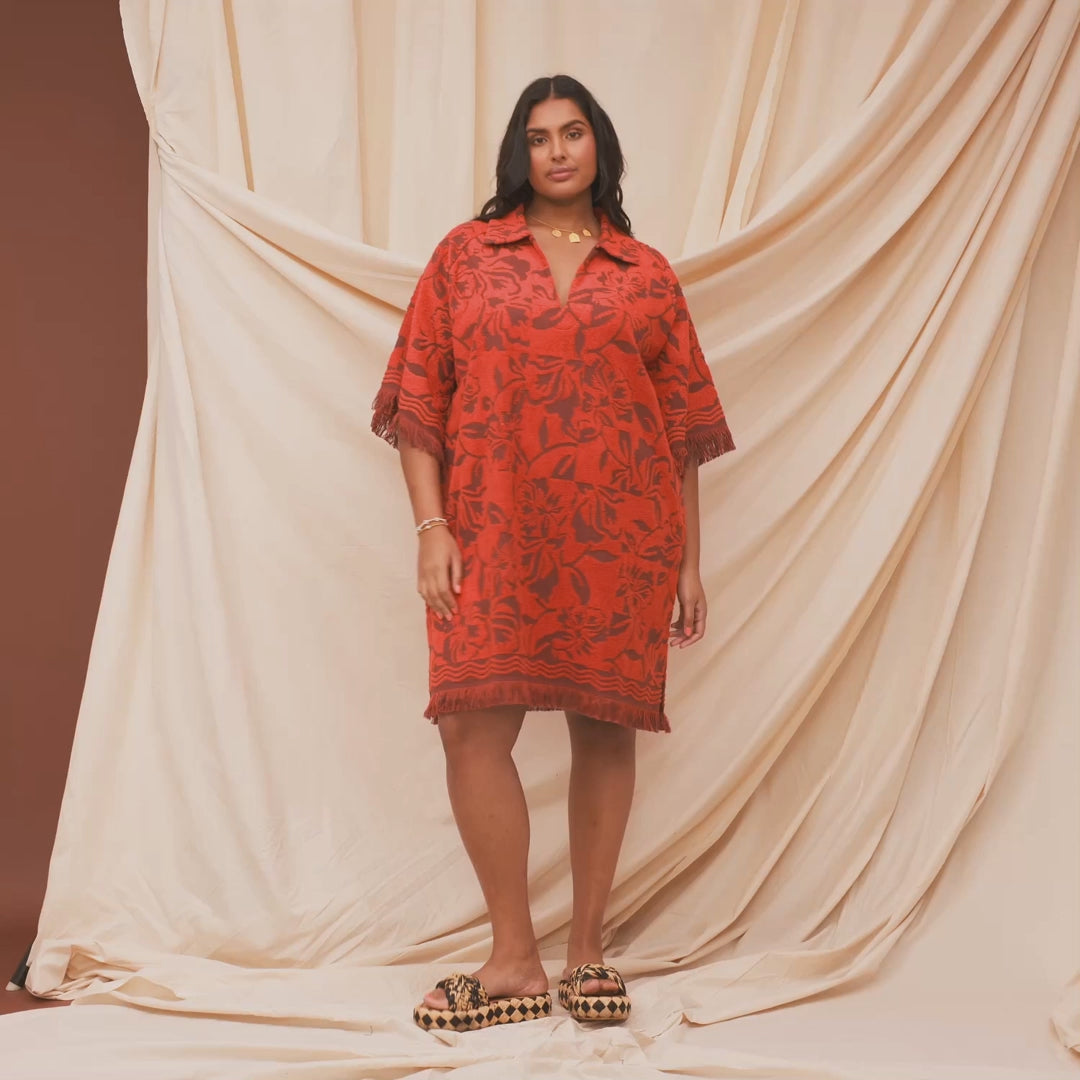 Sun smart and stylish, this terry towelling cover up is soft, lightweight and made for sunny escapes. Perfect post-swim or for strolling from the pool to lunch, its relaxed silhouette slips easily over bathers and pairs perfectly with slides and a sunhat for laid-back holiday dressing.