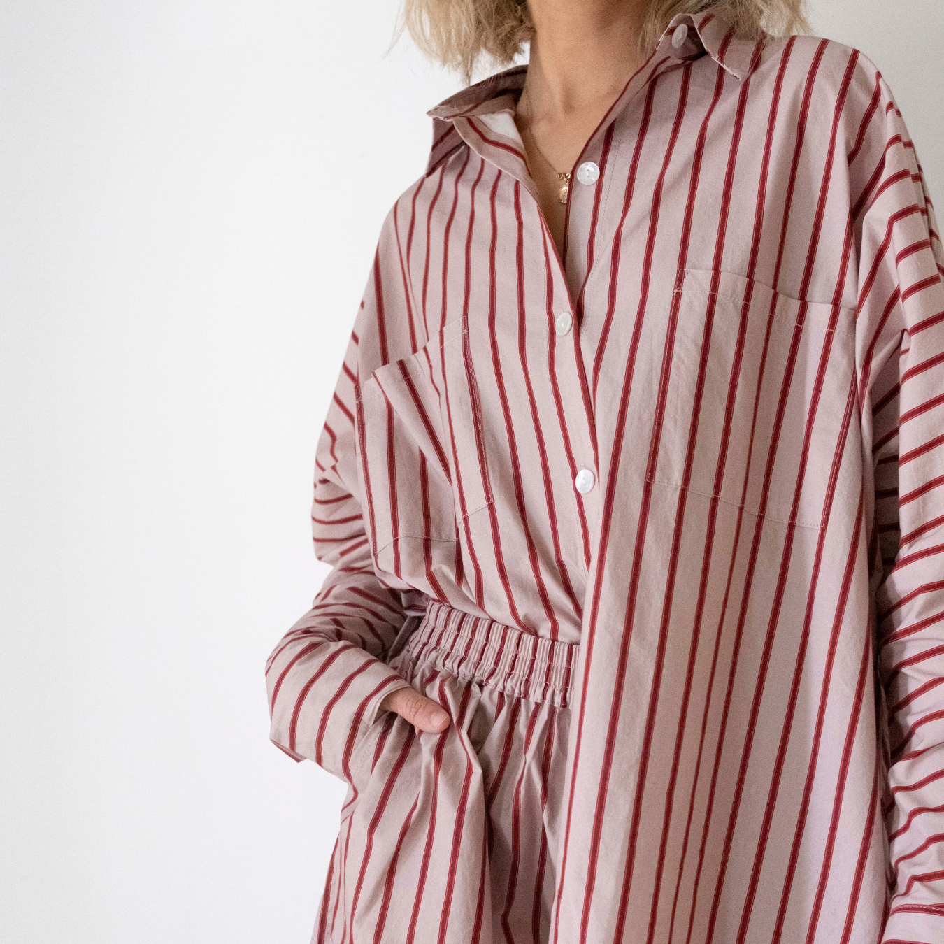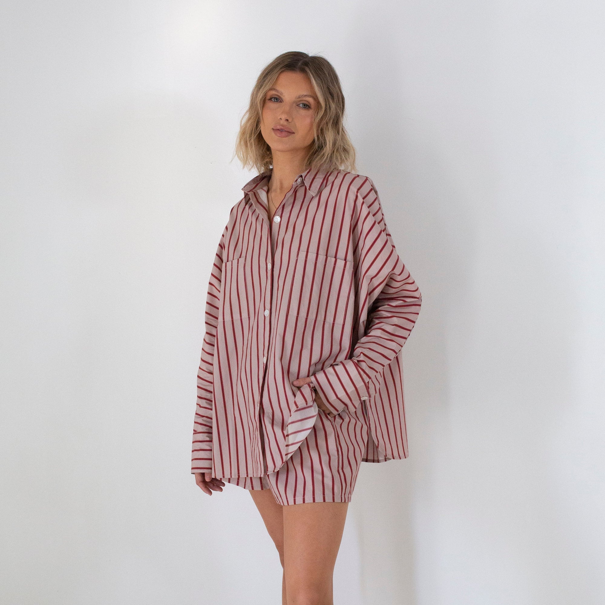 TINY TROVE ISLA STRIPE COTTON SET: BLUSH/RED STRIPE