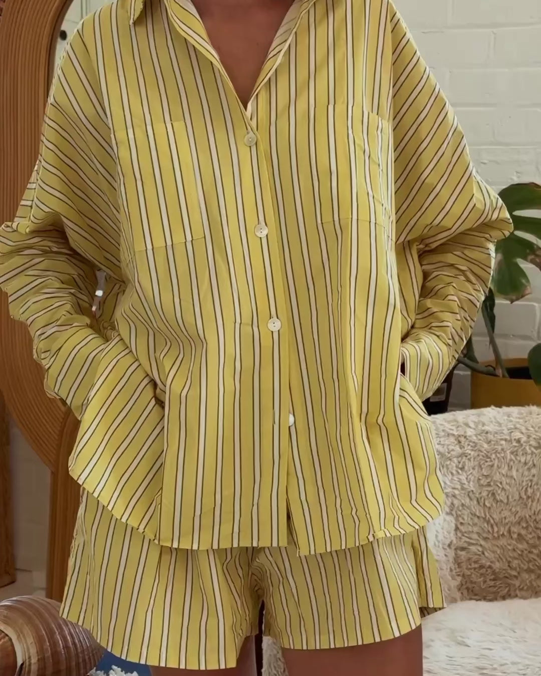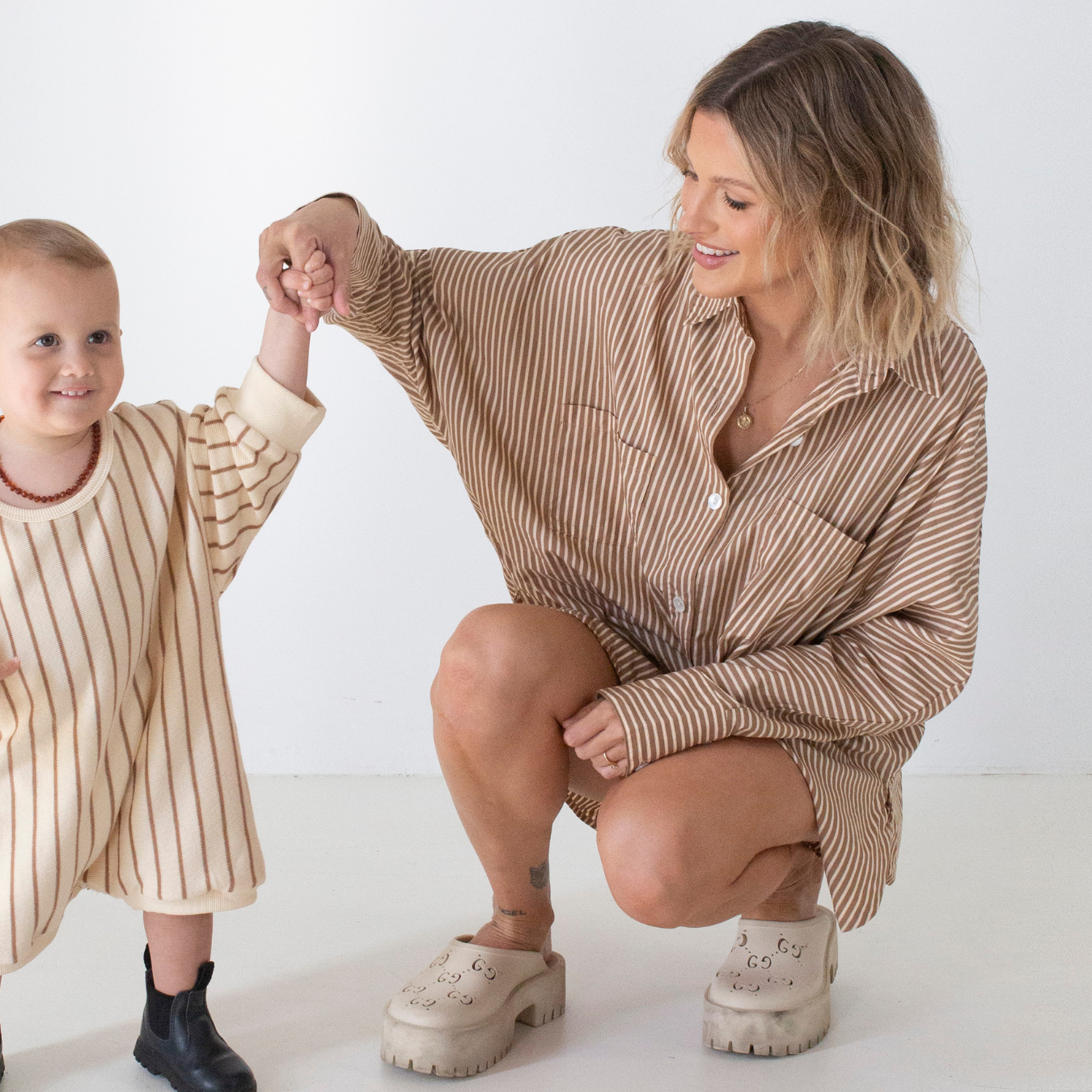 TINY TROVE ISLA STRIPE COTTON SET: CARAMEL/CREAM STRIPE