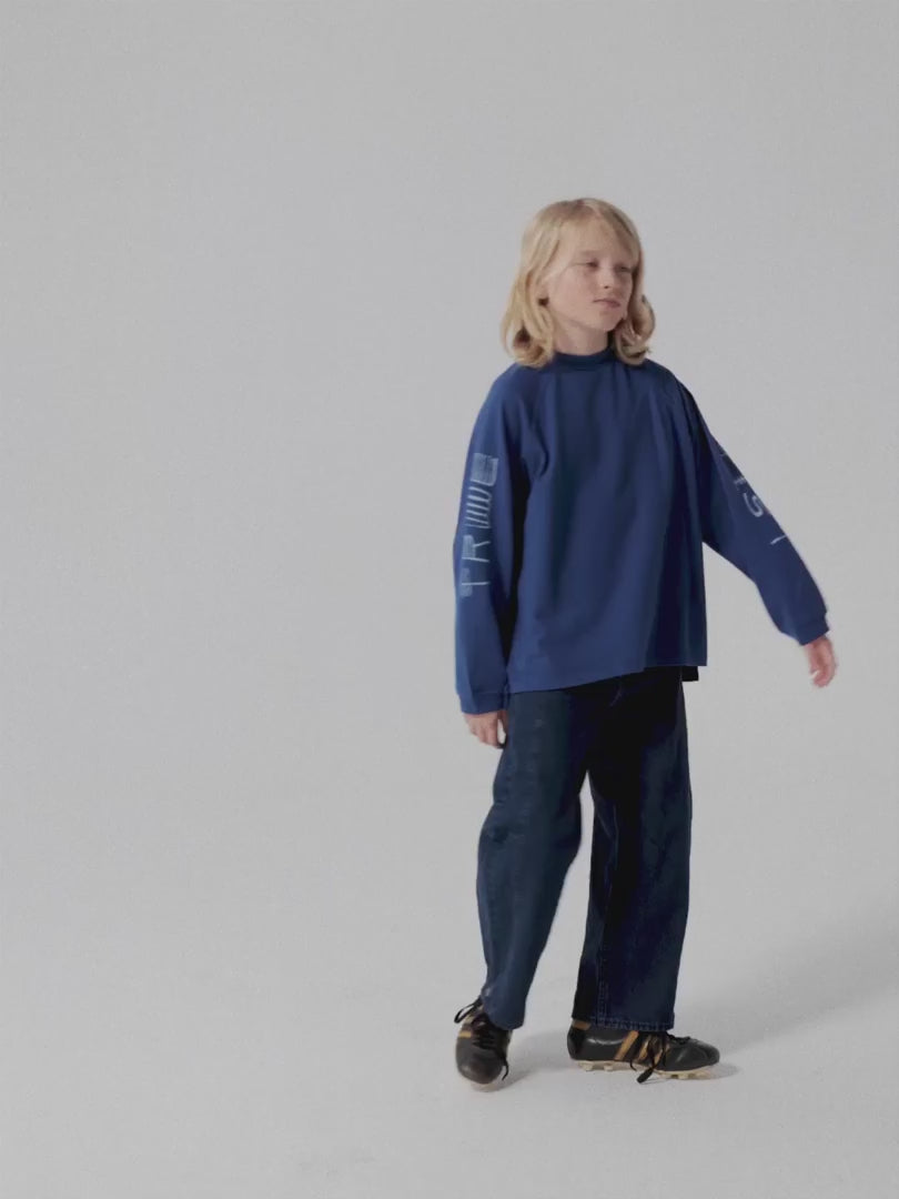 T-shirt nº12 in Blueprint is made of 100% organic high density cotton and features a True Artist seasonal print on the sleeves. It is designed with round neck, raglan long sleeves and side slits. It has a loose fit.